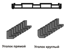 Нарезанные профили соединяются прямыми или закругленными угловыми элементами.