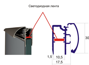 Светодиодная лента устанавливается внутри профиля.